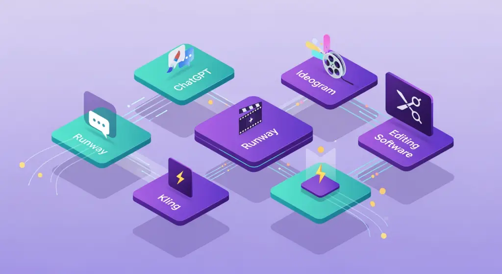 Kurzantwort: KI-Video-Workflows sind strukturierte Prozesse, die mehrere Tools (ChatGPT, Ideogram, Kling/Runway, Schnittsoftware) durch standardisiertes Asset-Management, Bewegungssteuerung und automatisierte Übergaben orchestrieren, um professionelle Videoinhalte in großem Umfang zu erstellen.