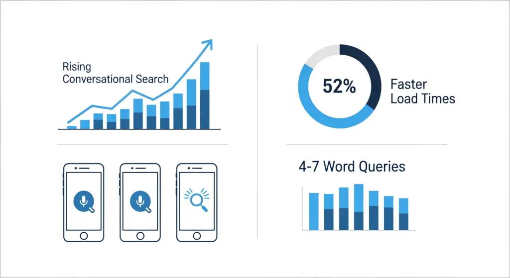 Erinnerst du dich an die Statistik, dass Sprachergebnisse 52 % schneller geladen werden? Das ist kein Zufall. Algorithmen für die Sprachsuche priorisieren Geschwindigkeit, weil Menschen sofortige Antworten erwarten, wenn sie Fragen laut stellen.