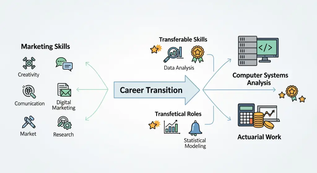 Wenn du dich für eine Marketingrolle innerhalb desselben Bereichs entscheidest, dauert es in der Regel 3 bis 6 Monate, wenn du dich auf stabile Branchen konzentrierst. Für einen branchenübergreifenden analytischen Wechsel sind 6-12 Monate erforderlich, einschließlich der Entwicklung von Fähigkeiten, während ein vollständiger Karrierewechsel, der eine Zertifizierung erfordert (z. B. als Aktuar), 12-24 Monate dauert. Der Zeitrahmen hängt von deinen aktuellen analytischen Fähigkeiten, deinen finanziellen Möglichkeiten und deiner Bereitschaft ab, auf Einstiegspositionen in neuen Bereichen zu beginnen.