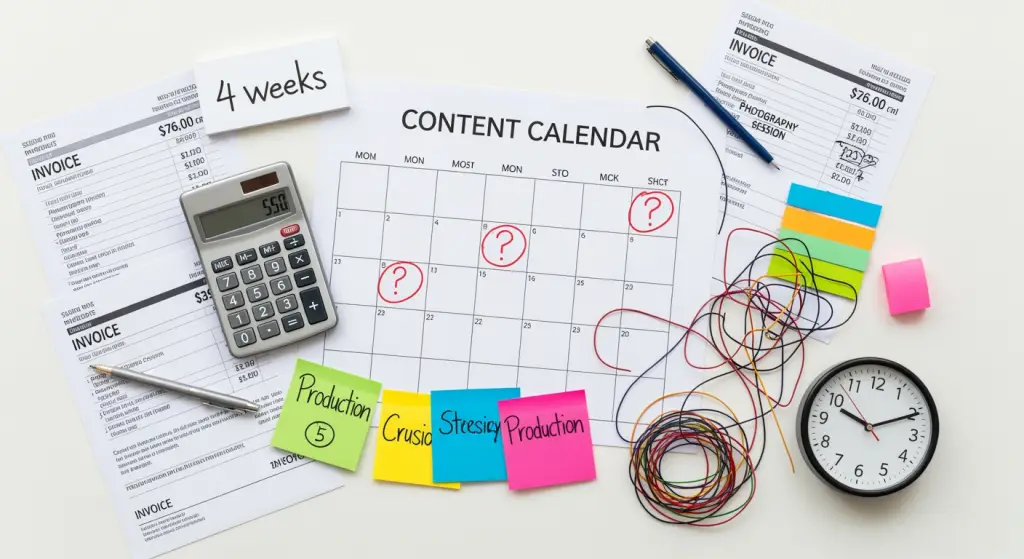 Das zweite Problem ist die zeitliche Lücke zwischen der Planung und der Ausführung von Inhalten. In der Praxis sieht das so aus: Du planst eine Kampagne in Woche 1, stellst in Woche 2 fest, dass du bestimmte visuelle Elemente benötigst, buchst einen Fotografen für Woche 4 (weil die guten Fotografen immer beschäftigt sind) und erhältst deine Ergebnisse in Woche 5. Und dann? Dein Kampagnenzeitplan hat sich verschoben oder das Messaging hat sich weiterentwickelt. Diese 4-Wochen-Verzögerung zwischen Konzept und Lieferung macht die Agilität zunichte. Im Jahr 2026, in dem KI-generierte Nachrichtenzyklen in Stunden statt in Wochen ablaufen, bedeutet diese Verzögerung, dass deine Inhalte erst dann ankommen, wenn alle schon zum nächsten Thema übergegangen sind.