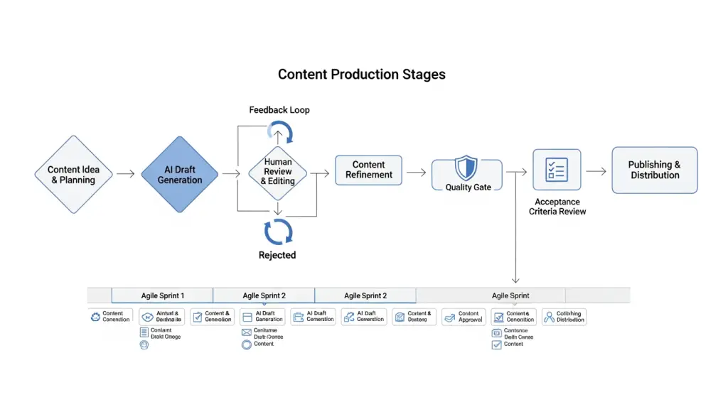 Olha, a integração bem-sucedida de conteúdo humano e de IA significa tratar o controle de qualidade como o desenvolvimento ágil de produtos. Você precisa de critérios de aceitação definidos e ciclos de feedback que realmente funcionem. Isso não é apenas teoria – é como as equipes de conteúdo de alto desempenho publicam consistentemente em escala sem sacrificar os padrões.
