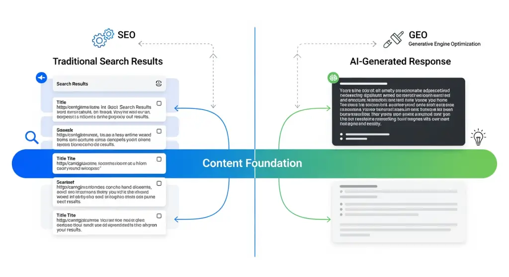 Há também um debate genuíno que vale a pena reconhecer aqui. Alguns profissionais dizem que o GEO é apenas um bom SEO com melhor estrutura de conteúdo. Outros, incluindo os analistas da eMarketer, dizem que os dados simplesmente não apóiam essa sobreposição. O consenso atual tende a ser complementar, mas distinto, com os fundamentos de SEO sendo necessários, mas não suficientes para o sucesso do SEO geográfico. Minha opinião: ambos os campos estão parcialmente certos, e a resposta prática é auditar sua situação específica em vez de adotar a ideologia de qualquer um deles por completo. Veja também: Estratégia de SEO para IA: Evolua para a era da IA.