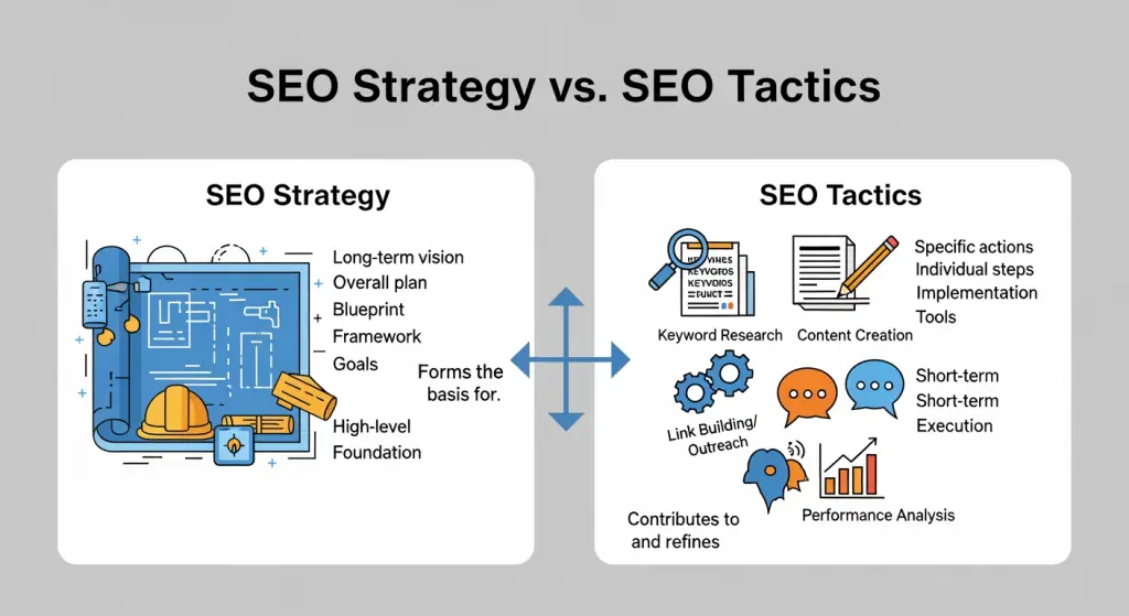 Estratégia de SEO vs. táticas de SEO: A distinção fundamental